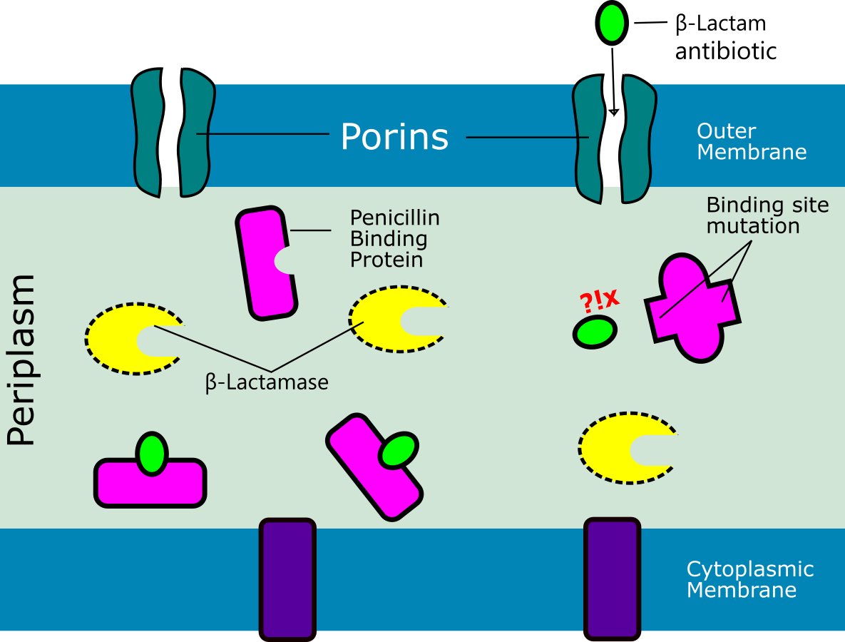 Figura 2. Mecanismo de resistencia a antibióticos betalactámicos por mutación de las proteínas de unión a la penicilina (PBPs)
